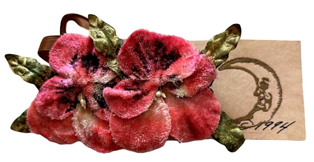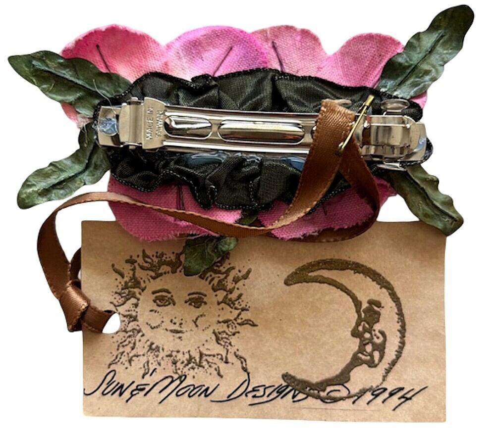 手作りバレッタ パンジー 手造り髪飾り ヘアアクセサリー レトロなバレッタ 一点もの 個性的 手作り 珍しいデザイン アンティーク アンティークデザイン ピンク サンフランシスコ KH1