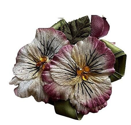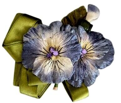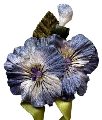 手作りタッセル パンジー カーテン 手造り レトロなバレッタ 一点もの 個性的 手作り リボン 珍しいデザイン アンティーク アンティークデザイン ブルー キャサリンコレクション KK1