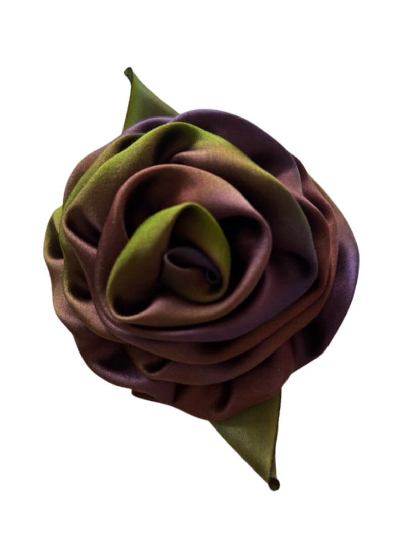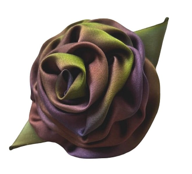 手作りブローチ シルクリボン サテン リボン コサージュ 一点もの 個性的 手作り 珍しいデザイン アンティーク調 アンティークデザイン パープルグラデーション ロサンジェルス SB4